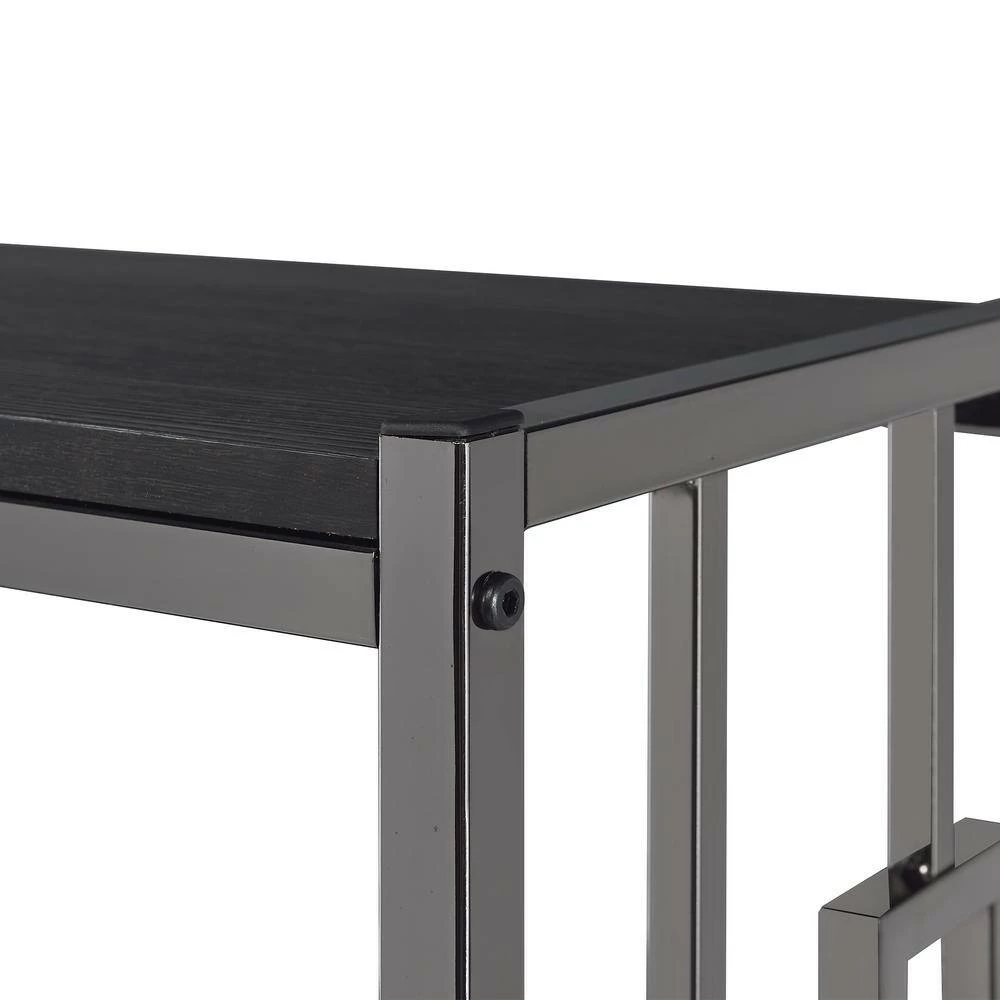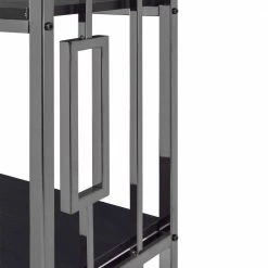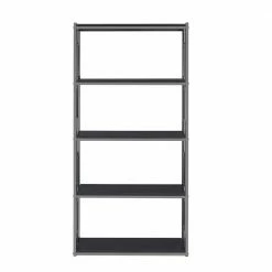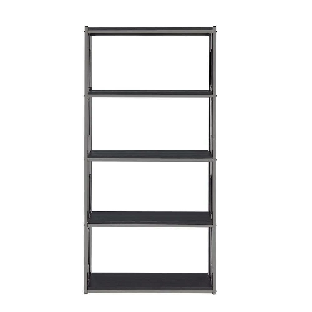 - Wooden shelves in sleek, black finish