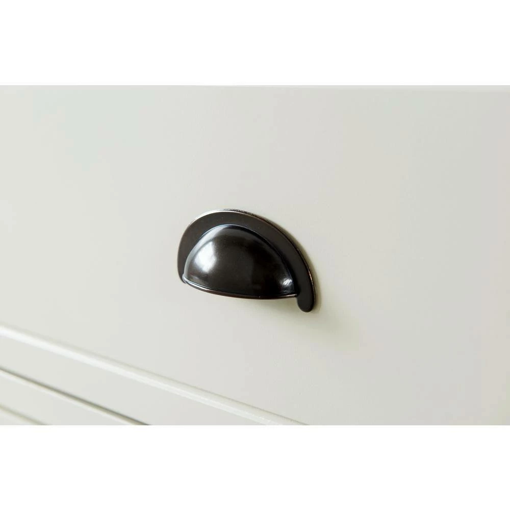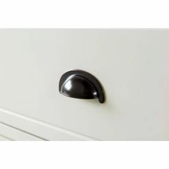 - Dark metal drawer hardware