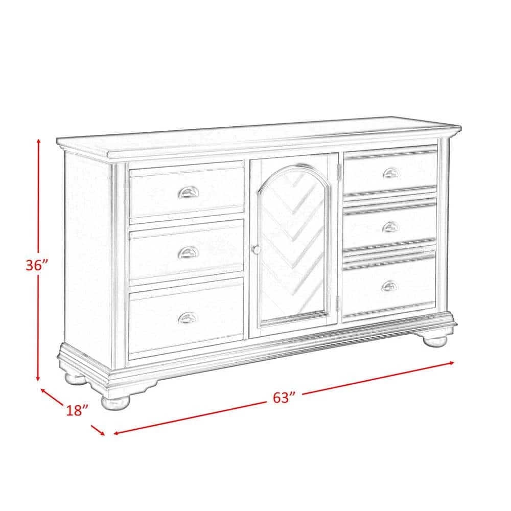 The Picket House Furnishings Addison 6-Drawer Dresser is the perfect addition to your bedroom. This dresser comes with six spacious drawers and one sizable cabinet. Inside the cabinet are 2 adjustable shelves, allowing you to customize your storage space. The cabinet door features chevron pattern veneers adding an extra dash of style. The bottom drawers feature a dust proofing layer to help protect your belongings. Dark metal hardware complete the drawer fronts. This dresser brings the cottage charm with its casual white finish.