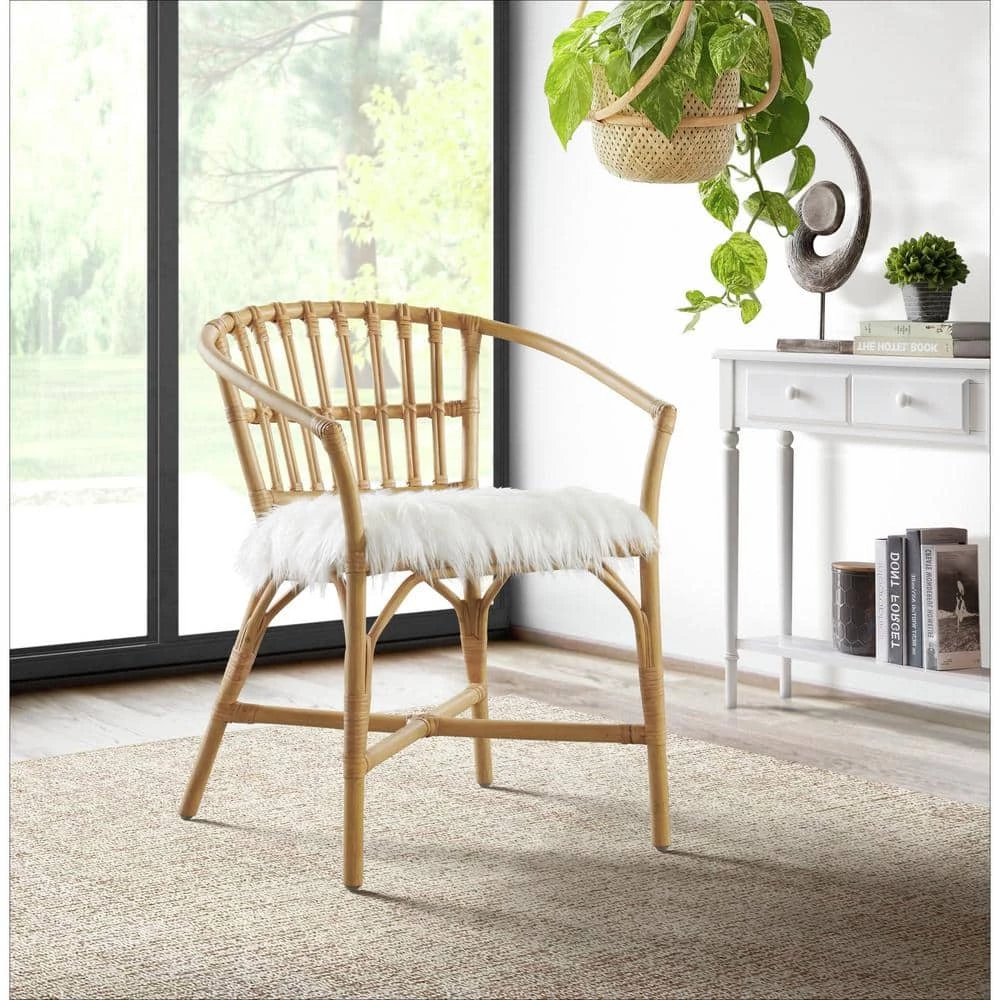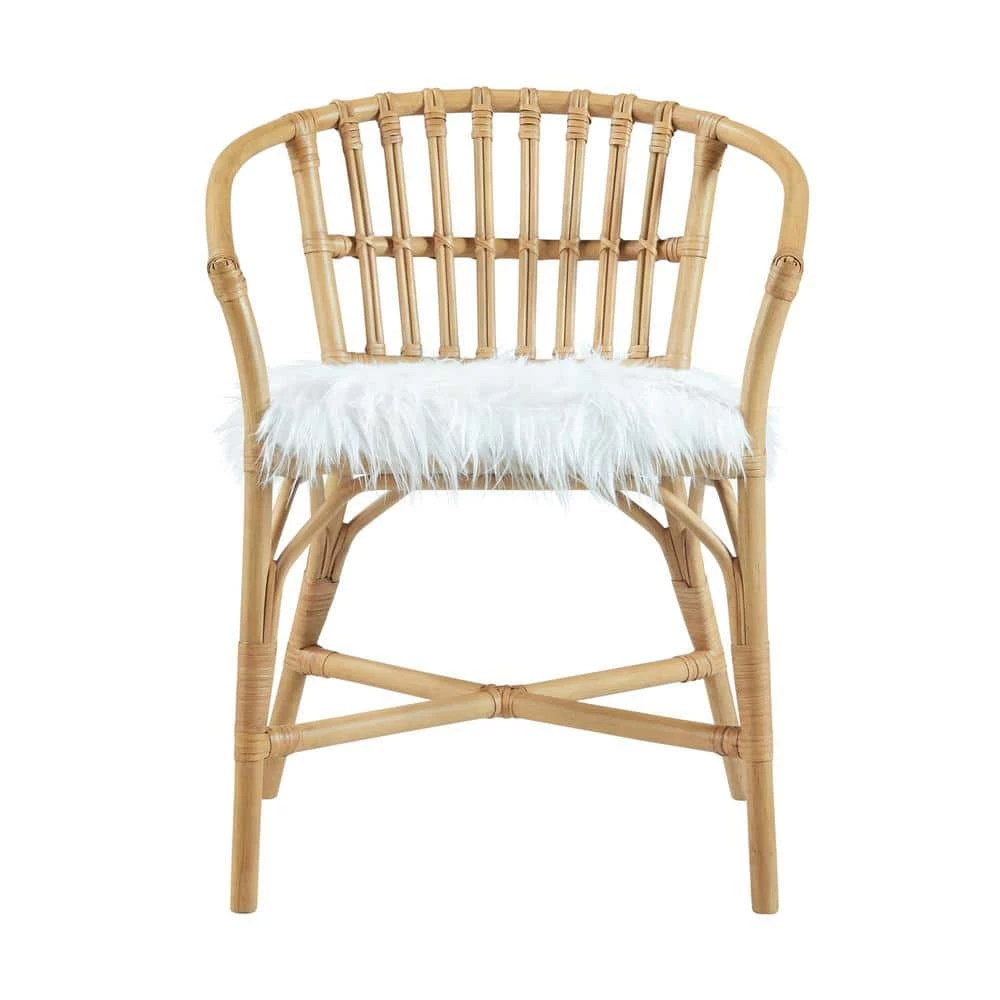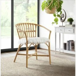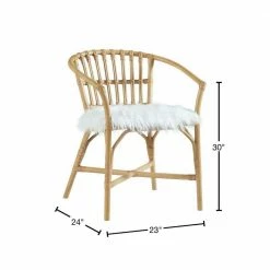 Picket House Furnishings Maddie Arm Chair gives the classic windsor chair a stylish update. Maddie delivers a Scandinavian vibe with its airy design, classic slatted back, and attached arms. Ergonomically curved and sloped backward for all day lounging and maximum comfort. The fuzzy wool cushion is the perfect final touch, adding an eccentric textural element to the overall design. This chair fits into any home aesthetic providing a chic, mid-century look ideal for your home office or living room.