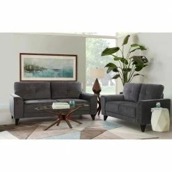 Discount ⌛ Asher 55 in. Charcoal Polyester 2-Seater Loveseat by Picket House Furnishings 😀
