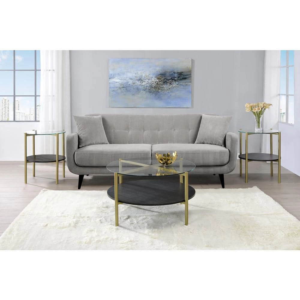 The Picket House Furnishings Blaine 3-Piece Occasional Table Set is living room goals. This three piece set includes a coffee table and two end tables. The table tops are tempered glass, ensuring stability and also a touch of chic. The table legs are powder coated in a gold metallic, which pairs beautifully with the black shelf in the middle. The shelf in the middle of the tables is ideal for storing away books and magazines, or to display your favorite decor. Add this trio to your home today for a look that’s uniquely you.