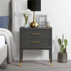 Organize your space with the sophisticated Picket House Furnishings Brody Side Table. Expertly crafted in rubberwood, MDF, and accented with gold metal hardware for the bold look you deserve. The Brody Side Table features two spacious drawers for storing your favorite items at arm’s reach. Keep your devices always charge with the built-in USB port. Clean-lined frame for effortless modern aesthetic, perfect next to your bedside or modern sofa. Bring a chic and modern feel to any room when you add the Brody Side Table.