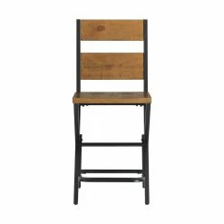 The Picket House Furnishings Colt Counter Side Chair Set shapes up your dining space with its industrial and refined rustic design. Includes two chairs. The chair set showcases natural wood grain, distressing, and live edge styling with a rich amber brown color. The black metal frame and sophisticated texture of the chair creates a union of style. Perfect addition to a modern space looking for an industrial touch.