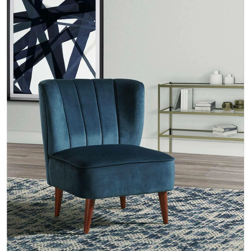 The Picket House Furnishings Corbin Accent Chair features a curved styled back and is upholstered in a soft, velvet fabric. Constructed of plywood and set on four wooden tapered legs. The foam-filled seat cushion provides enhanced comfort for all day lounging. With a contemporary design, this accent chair is perfect for various home designs and color palettes. Easy to handle and ships in one box!