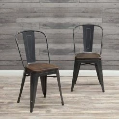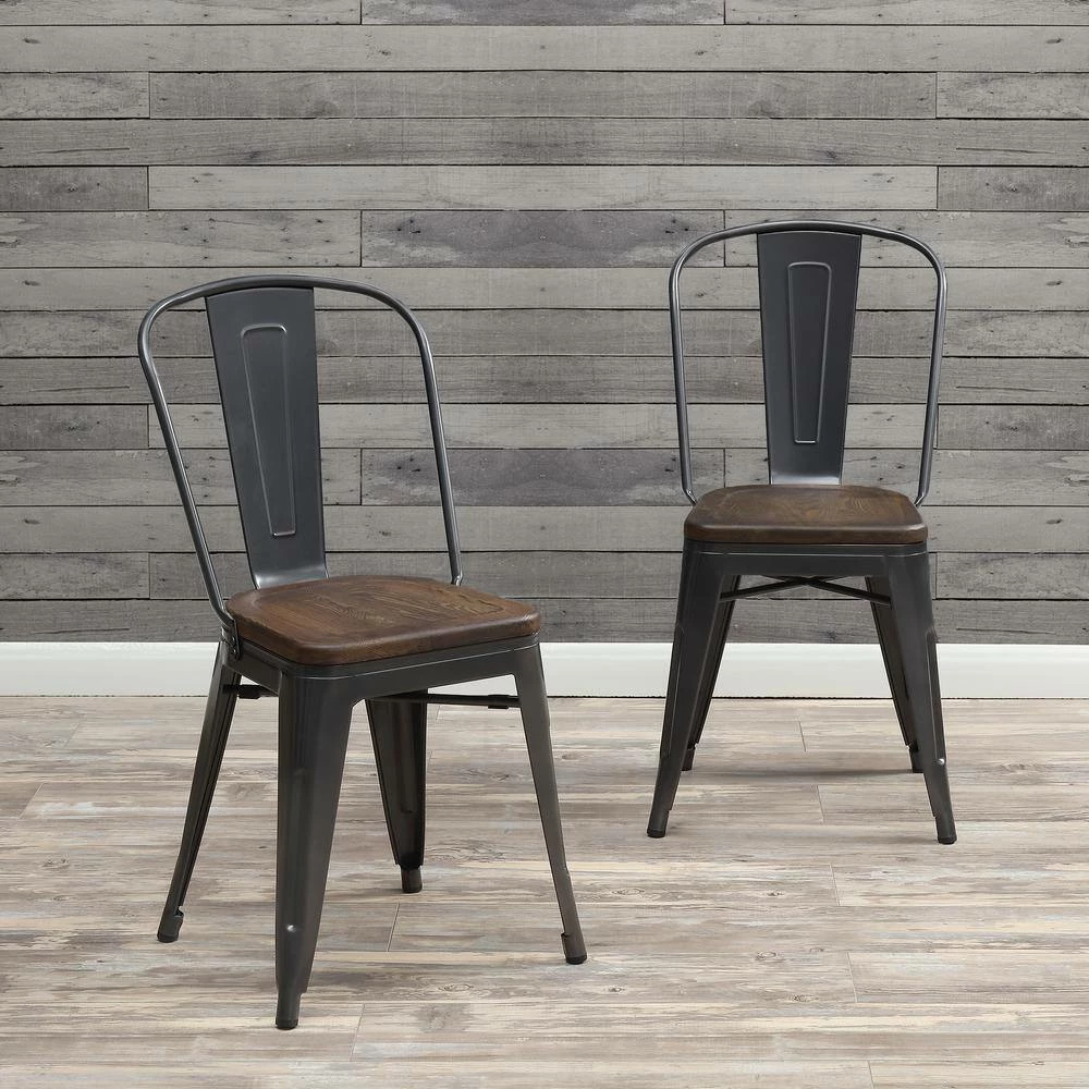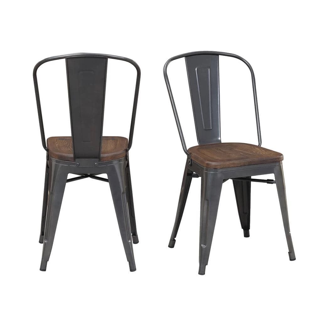 The Picket House Furnishings Davis Metal Chair Set is the ultimate addition to your kitchen. This chair set comes with 2-chairs. The metal frame is powder coated in a transitional gray color, while the wooden seat is a rich walnut. The arched back adds extra flair with a single panel to support your back. The wooden seat features woodgrain details, making these chairs stand out. The industrial design makes it easy to pair with your home, thanks to its clean and sleek lines.