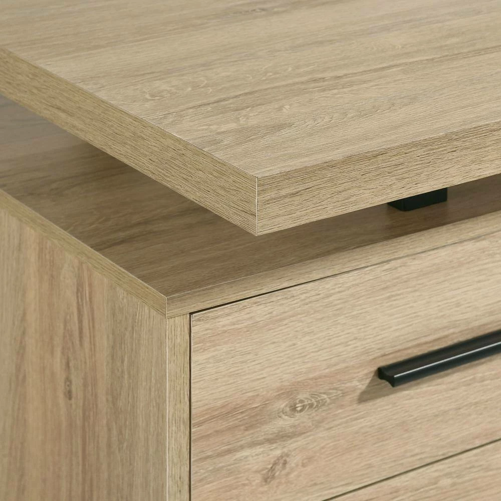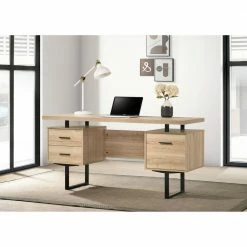 Picket House Furnishings Elwood Desk in Oak is the perfect combination of style and function. With an oak wood look and set on a sturdy black metal base. Features a unique floating top and three drawers that can be used to store all of your essential office supplies. This desk adds a sophisticated and modern touch to a industrial design. Ships in one easy to handle box!