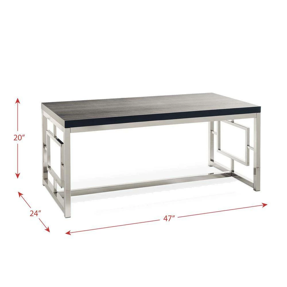 The Picket House Furnishings Harper 2-Piece Occasional Table Set is the update your home is in need of. This stylish duo is modern glam at its best and includes a coffee table and an end table. The table tops are finished in black, while the metal legs are finished in chrome, making this color combination unbeatable. The sides of the tables feature an intricate design, one that is modern and will never go out of style. The stretcher at the bottom of the table bases provide extra support to ensure longevity. It would be a crime not to add this chic Harper Collection to your home.