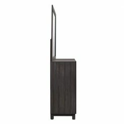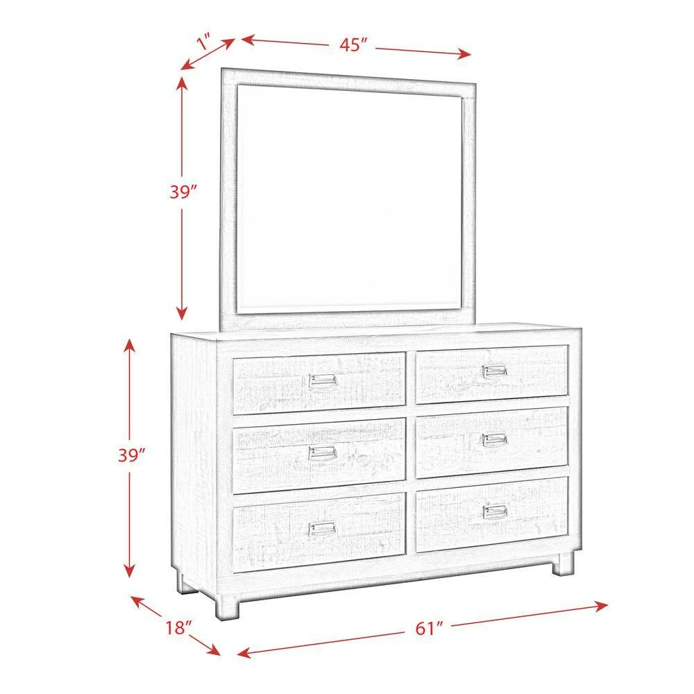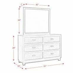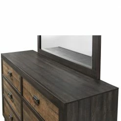 The Picket House Furnishings Harrison 6-Drawer Dresser will add more than just function to your bedroom. This bedroom dresser comes with six, large spacious drawers, perfect for keeping all of your belongings neatly stored away. The top drawers are felt lined, which means you can store your more delicate belongings without worry. The bottom drawers feature a dust proofing layer to help protect your belongings. The unique finish on this dresser is very striking with the framing in a dark chocolate color, while the drawer fronts are a complementary lighter finish. The portrait orientation mirror features the same dark chocolate finish. Completing the look are the dark nickel drawer pulls and square feet.