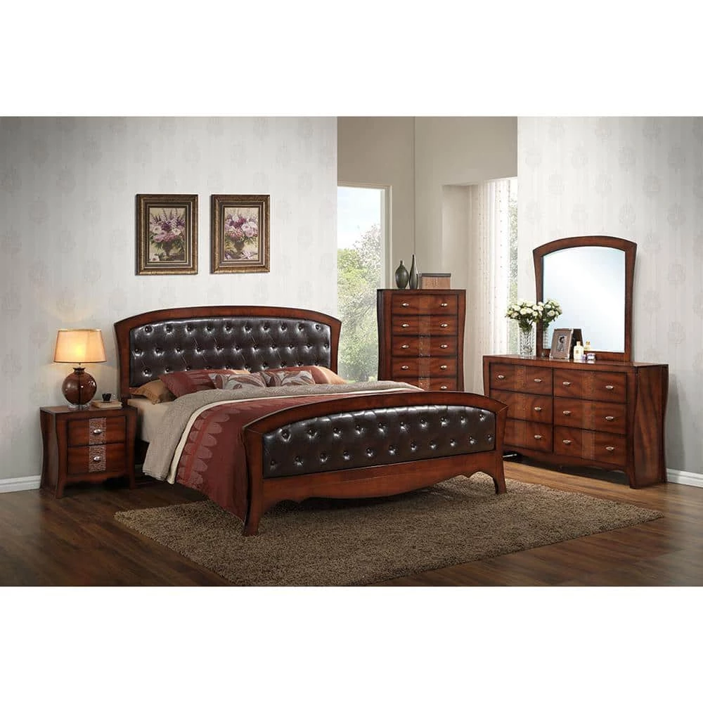 The Picket House Furnishings Jansen King Panel Bed is embellished with, a diamond tufted headboard and footboard. The flared shape of the legs pairs perfectly with the arch of the headboard and footboard. A rich espresso finish and stylish shaped aprons add the finishing touch to the fashionable piece.