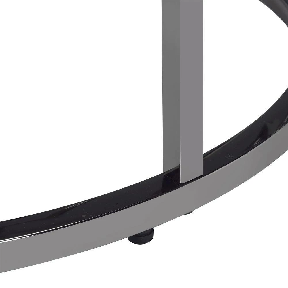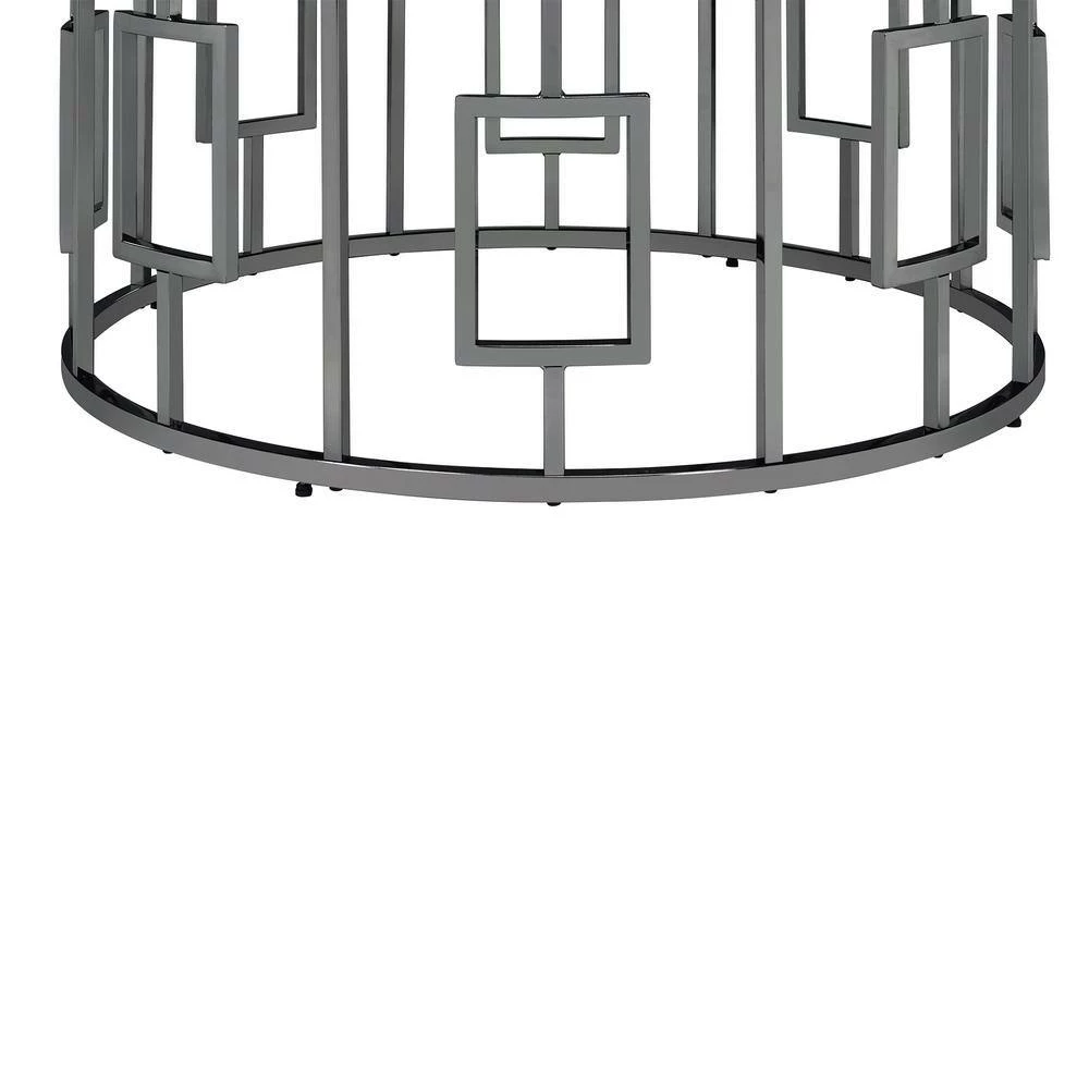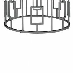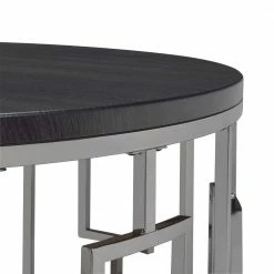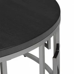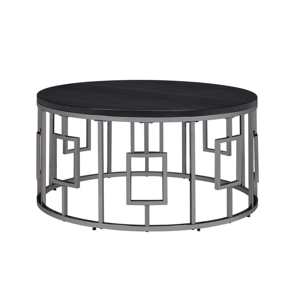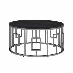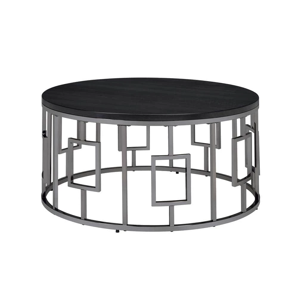 The Picket House Furnishings Kendall Round Coffee Table instantly glams up your home. This round coffee table features a sleek, chrome metal base with cutout designs all around. The table top is wooden and has a chic black finish. This coffee table is ideal for small space living. Its clean lines will for sure make this a standout piece in your home; while the transitional design will make it a staple year after year.