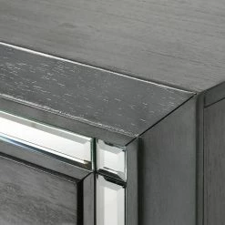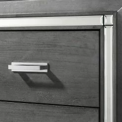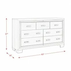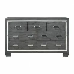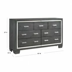 The Picket House Furnishings Kenzie 7-Drawer Dresser is the perfect addition to your home. This bedroom dresser offers plenty of storage space, with its seven spacious drawers. The top drawers are felt-lined, protecting your more valuable items, while the bottom drawers feature a dust proofing layer to help keep your belongings in tact. On the front of the dresser, a mirror glass trim frames the dresser; adding extra flair to this already stylish piece. The sleek, chrome handles pair perfectly with the trendy, gray finish. Bracket feet complete the look of this bedroom staple.