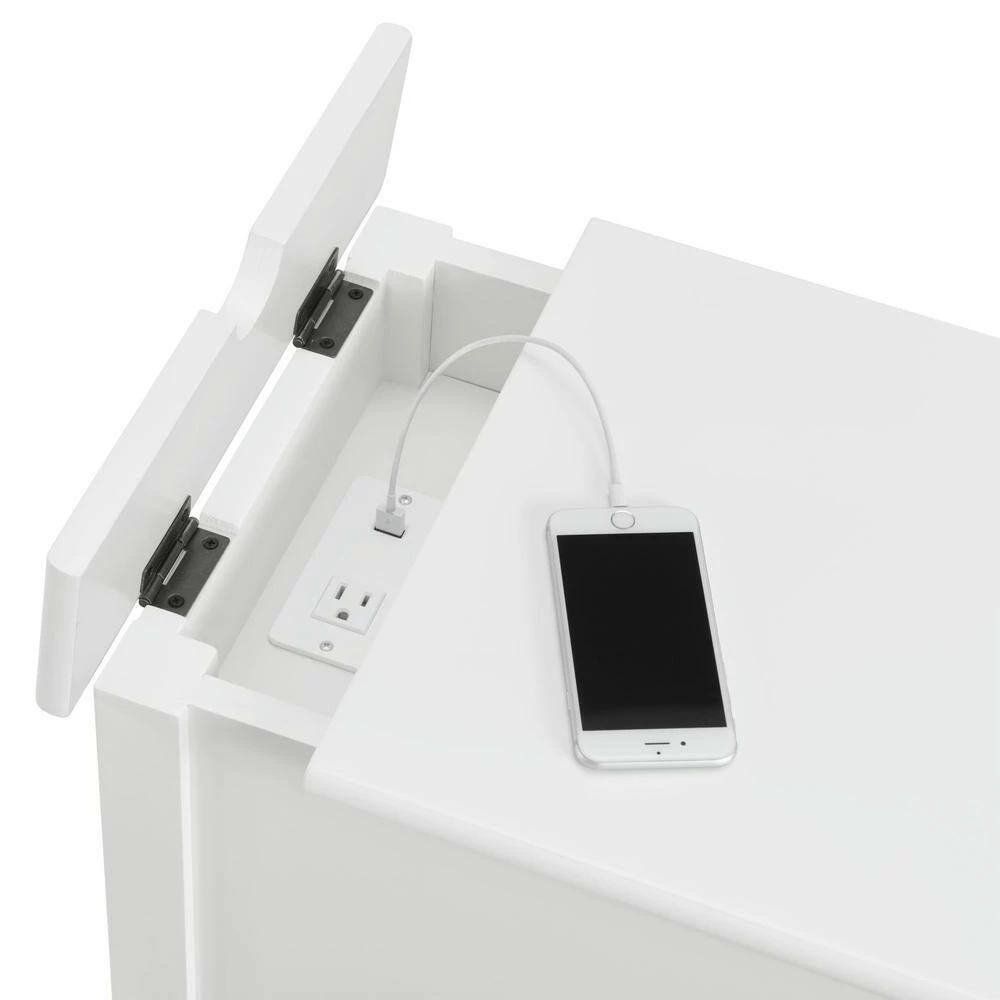 The Picket House Furnishings Kian Side Table is the right fit for anywhere in your home. Designed with character and functionality. Crafted of sturdy solid wood and MDF. This side table includes one spacious drawer, hidden storage under lift top, and tempered glass cabinet door. Also includes a built-in USB outlet conveniently placed for keeping your devices charged at all times. Add a transitional touch to your home with the Kian Side Table.