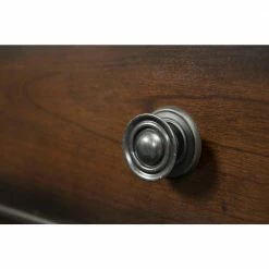 The Picket House Furnishings Kingsley 5-Drawer Chest is the perfect addition to your bedroom. This vertical chest comes with five, spacious drawers and one hidden drawer; perfect for neatly storing away your belongings. The top drawer is felt-lined, protecting your more valuable belongings. Raised panels and dark silver drawer knobs complete the fronts of the drawers. This chest of drawers in finished in a warm walnut wit a cherry veneer, making this traditional piece a staple in your home year after year. Clean lines and bevel edges are present throughout, while the bun feet complete the look of this spectacular piece.