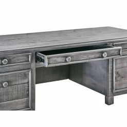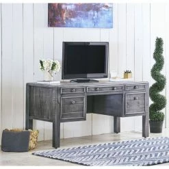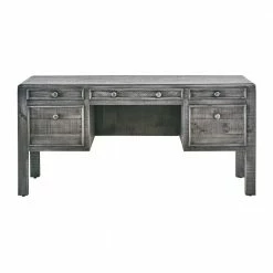 The Picket House Furnishings Lenox Desk in Industrial Grey allows you to get work done in rustic-style . Crafted in beautiful, solid pinewood for years of durability. This desk strikes a rectangular silhouette with thick square legs and round wood knobs. The distressing throughout gives this desk a worn and weathered look ideal for rustic home office aesthetics. With five spacious drawers to store all of your office essentials. The smaller drawers are made perfectly to store small supplies such as pens and notepads. The larger drawers are perfect for storing larger office essentials such as files and folders. Plan your schedule or do homework with the Picket House Furnishings Lenox Desk.