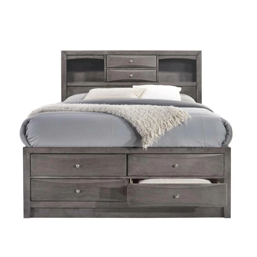 The Picket House Furnishings Madison Queen Storage 5-Piece Bedroom Set will keep you organized. Its contemporary, contoured drawers give it a custom look. Plenty of storage is provided throughout all case pieces as well as on all sides of the bed. This set is sure to add functionality and beauty to any room.
