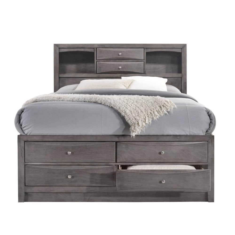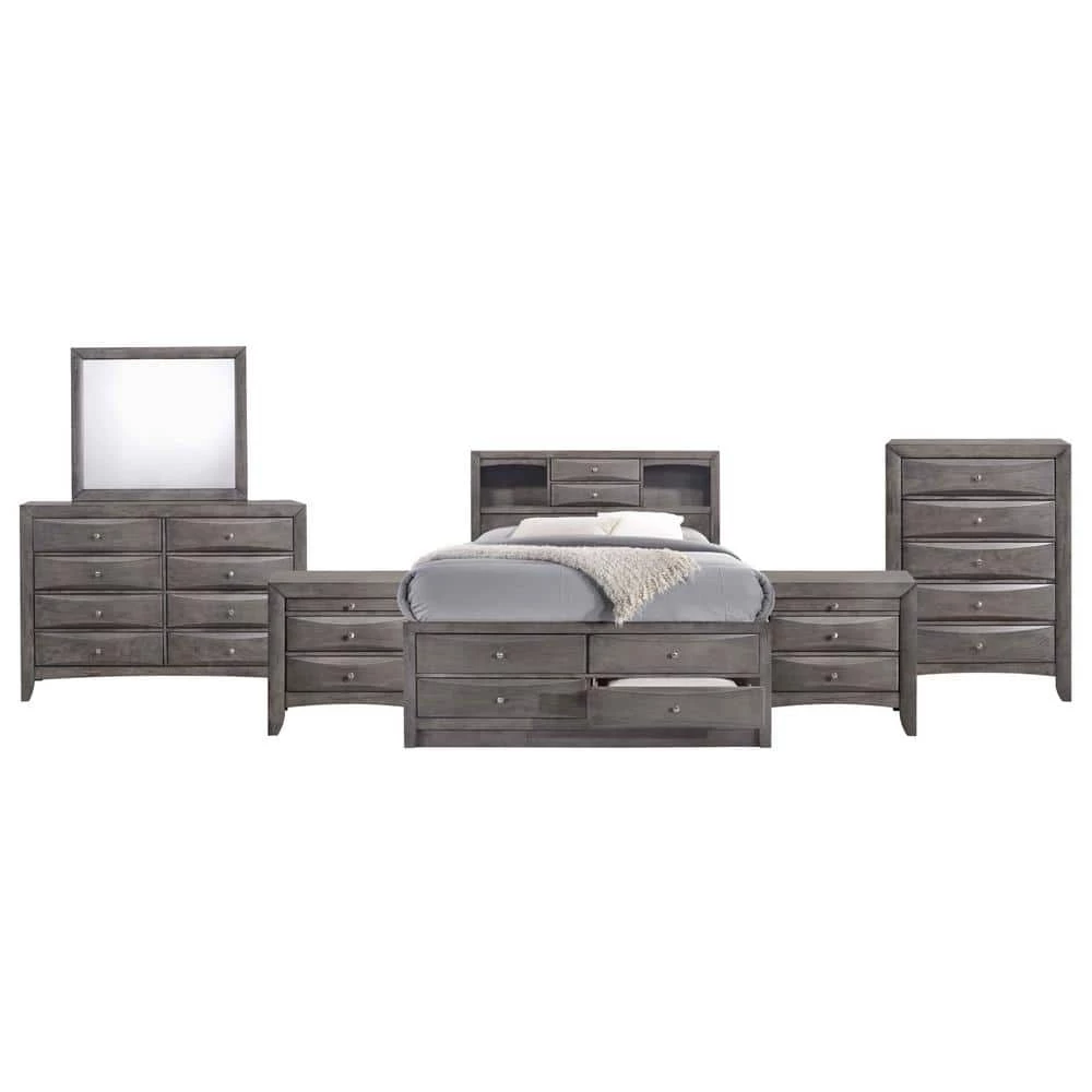 The Picket House Furnishings Madison King Storage 6-Piece Bedroom Set will keep you organized. Its contemporary, contoured drawers give it a custom look. Plenty of storage is provided throughout all case pieces as well as on all sides of the bed. This set is sure to add functionality and beauty to any room.