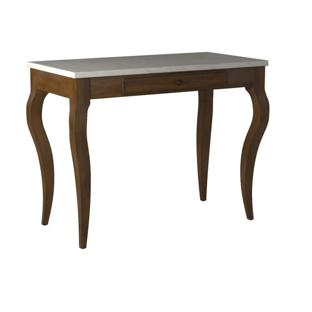 The Picket House Furnishings Melony Desk in White features a unique combination of wood and marble. The beautiful wood knobs and cabriole legs add a delightful French-inspired look. With one large drawer for storing supplies to stay organized and inspired. The versatile design of this desk allows this desk to be used as vanity or office desk. Whether it is for workspace, crafting, or to make your mornings run smoother, the Picket House Furnishings Melony Desk is the perfect desk.