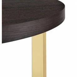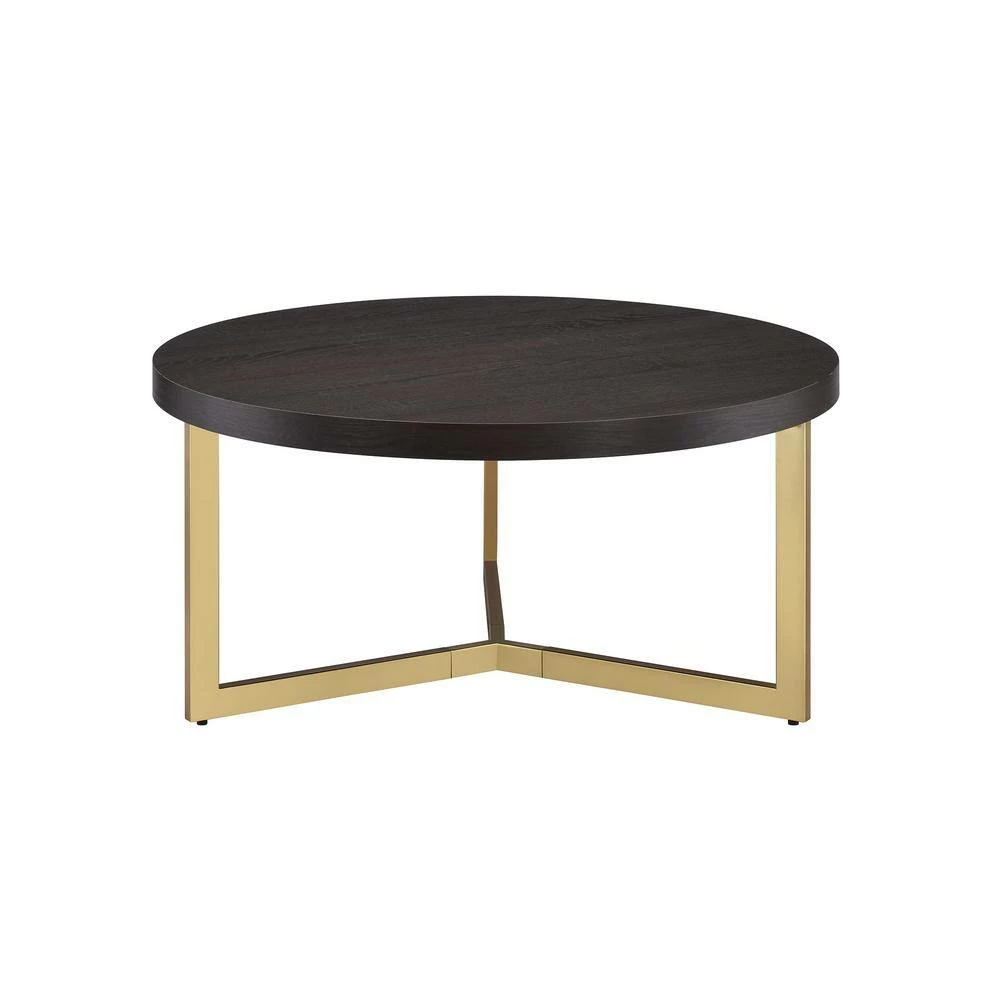 The Picket House Furnishings Melrose Coffee Table will instantly glam up your living room. This round coffee table features a sleek, gold metal base that pairs perfectly with the espresso finish top. The table top of the table is also distressed, adding a little extra flair to this already stunning piece. This coffee table has a three leg design style that gives an update to this living room staple. Add this glamorous coffee table to your home today for a look you’ll never tire of.