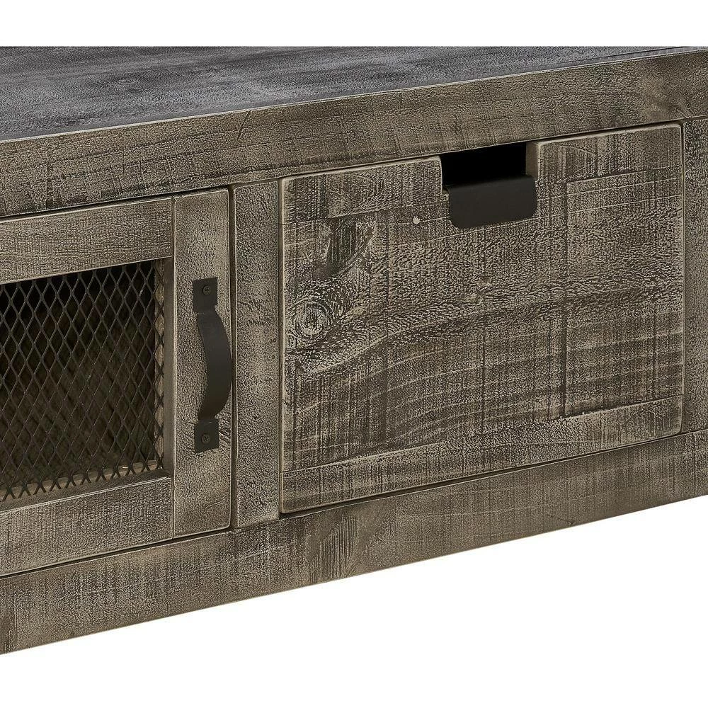 The Picket House Furnishings Micah Square Storage Cocktail will bring together your living area. Crafted of solid pine wood and mdf. Features one drawer at center that is perfect for storing remotes and two cabinets enclosed by chicken wire door fronts to store other items. Display your favorite home decor or pictures on the lower shelf. It also features casters for easy mobility, you can set this cocktail table wherever you choose without the hassle of moving it around. With a grey finish and light distressing throughout, the Micah Cocktail Table exudes the farmhouse appeal that is perfect for transitional homes.