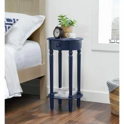 The Picket House Furnishings Neo Side Table is the perfect addition to your bedroom or living room. With a soft round design and constructed in MDF and rubberwood. The lower shelf is perfect for displaying your favorite indoor plant or favorite magazines. This side table is simple and petite, perfect for small spaces. Add the Picket House Furnishings Neo Side Table to your space for its simplistic details and functionality.