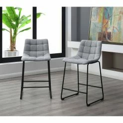 Discount 🛒 Richmond 25 in. Grey High Back Metal Counter Stool in Linen (Set of 2) by Picket House Furnishings ✔️