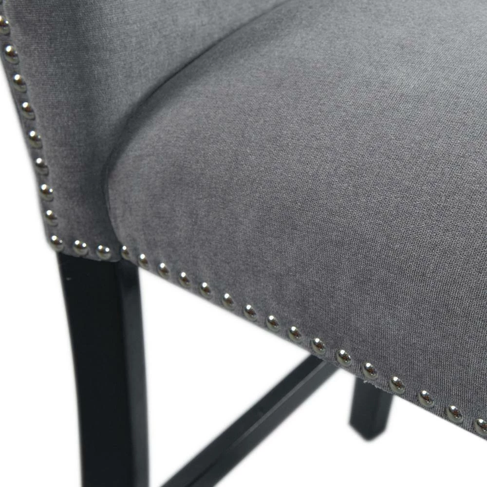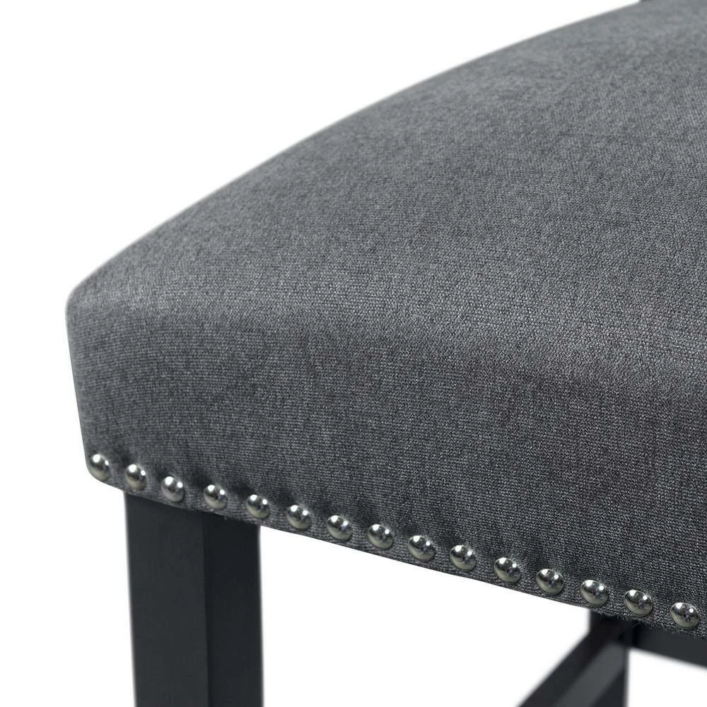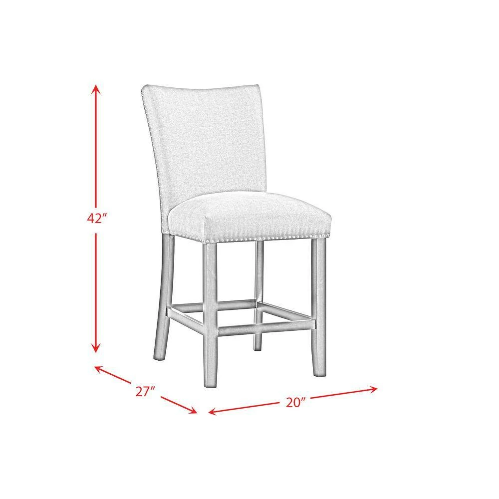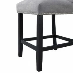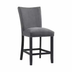 The Picket House Furnishings Stratton Counter Height Side Chair Set is going to look gorgeous in your dining room! This counter height set includes two side chairs, that are upholstered in a transitional, charcoal fabric. Chrome nailhead trim outlines the edges of the chairs, instantly adding extra flair to this already stylish duo. The foam cushion seat and back will keep you plenty comfy through even the longest of dinners. The tall solid back adds a little extra drama, creating a look that you’ll never tire of! Add these chairs to your dining room today!
