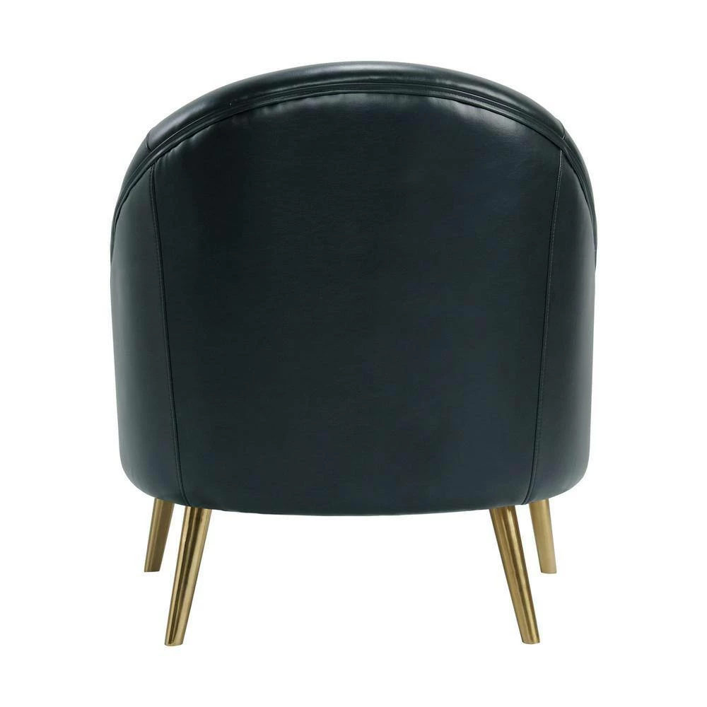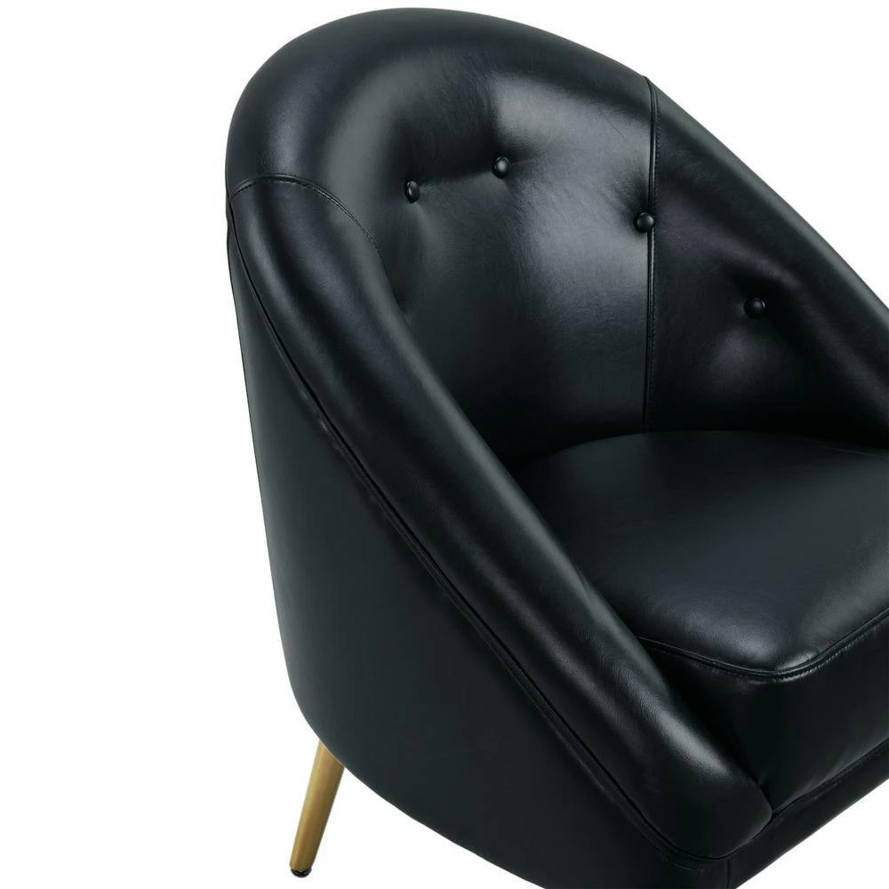The Picket House Furnishings Taya Accent Chair is the perfect addition to your home. This chair will add instant glamour to your living room. Upholstered in faux leather and constructed in solid rubberwood and plywood. Featuring beautiful deep button tufting and a curved silhouette. Foam cushioning for all day enhanced comfort. Set on trendy, tapered gold metal legs. Complete the look of your home with the Taya Chair.