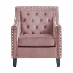 The Picket House Furnishings Teagan Accent Chair is the piece you’ve been missing. This chair is perfect for your modern home aesthetics. Crafted in plywood, rubberwood, and upholstered in soft velvet fabric. Adds an interesting touch with its silver nail head trim and diamond tufting at back. Add the Teagan accent chair to your home for a modern touch.