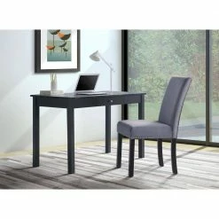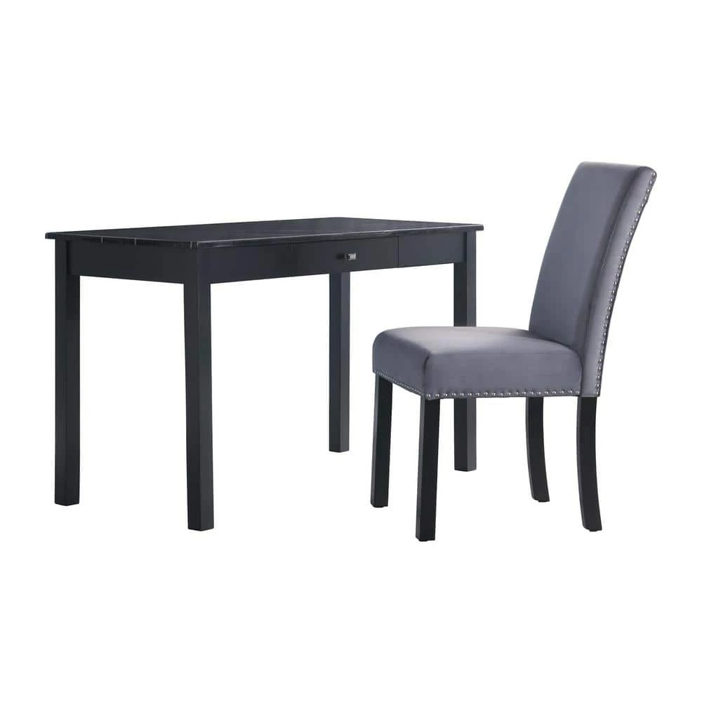 Outlet 😍 Zaid 48 in. Rectangle Black Faux Marble 1 Drawer Computer Desk with Chair by Picket House Furnishings ⌛