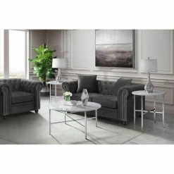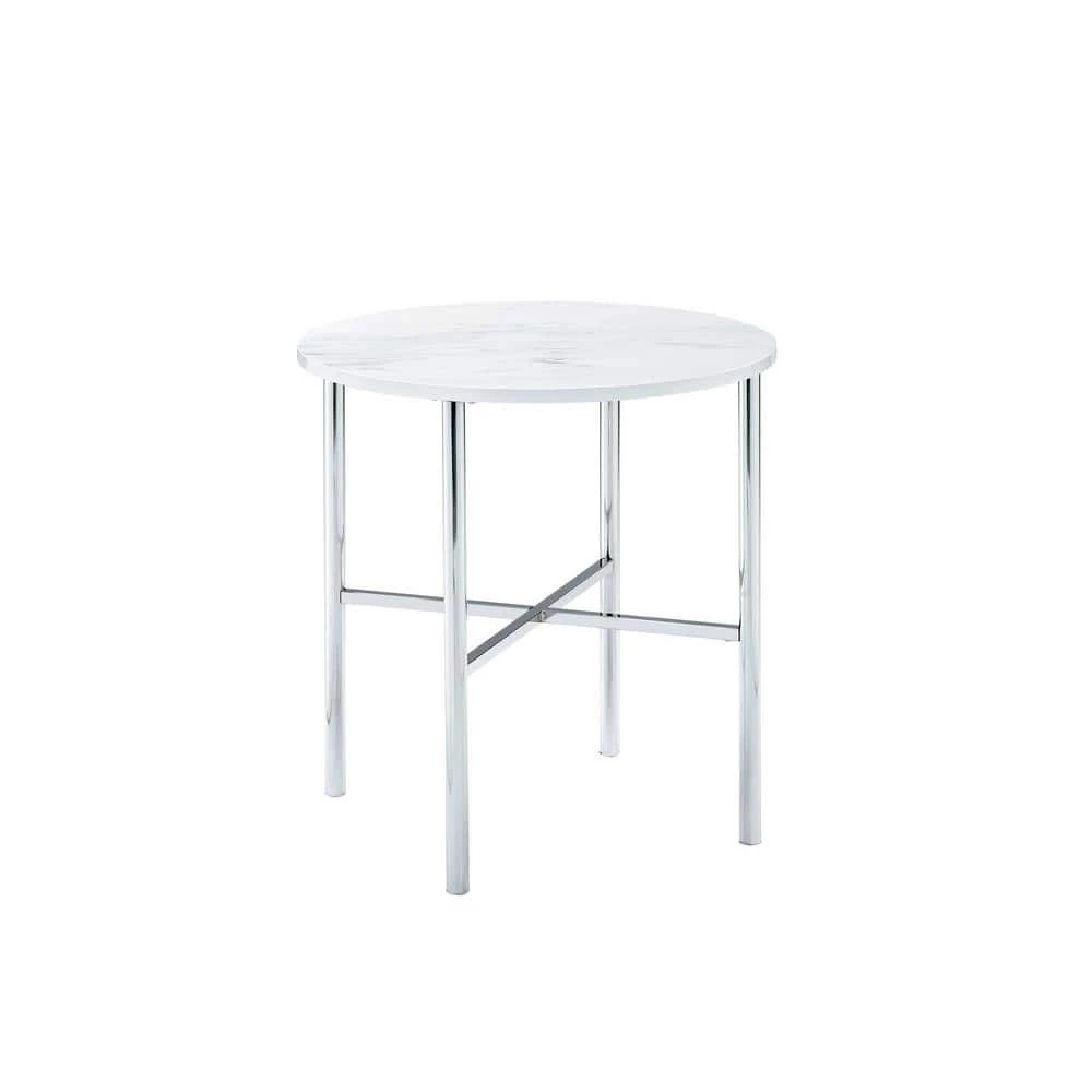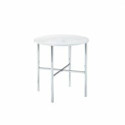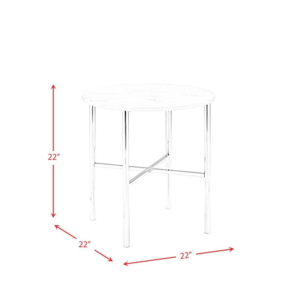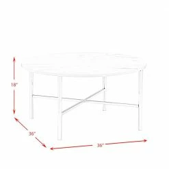 The Picket House Furnishings Zara 3PC Occasional Table Set is a must have piece for your living area. Glam begins here, with one coffee table and two end tables in this set. The tables showcase sleek chrome metal legs and a faux marble top. The round shape of the table top and the cross base provide quality stability of this piece. Add a mirrored lamp to the end tables, so the beauty of this set and shine through. Also, the chrome legs will shine against any flooring color and provide that kiss of glam in your space. Turn the lights on and let this glam set shine.