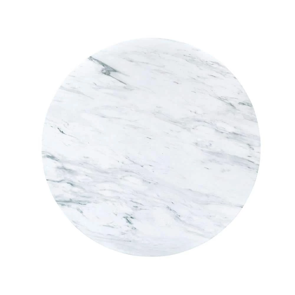 - White, faux marble table top