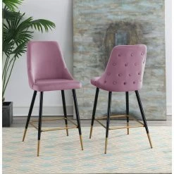 Coupon ⌛ Zia 27 in. Blush High Back Metal Bar Stool (Set of 2) by Picket House Furnishings 🎁